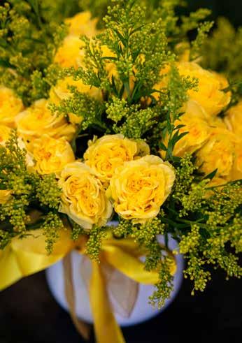 I love wildflowers. Those could be snapdragons, baby daisies, chrysanthemums, or goldenrod. And they look beautiful in bud vases. We have baby orchids that last up to twenty days. I love yellow roses for friends, or anything pink.