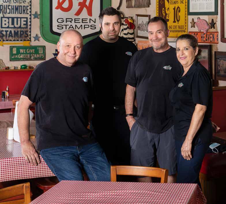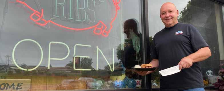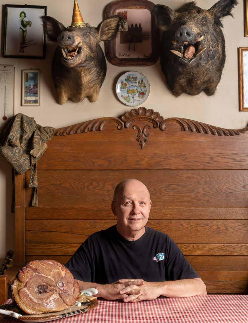 You’re at Baker’s Ribs, where that ice-filled tub of soft drinks is the offbeat introduction to a place filled with pig memorabilia of every two- and threedimensional description, a shrine to swine. The porkers ornament rooms festooned with signs advertising long-gone products, an American Pickers realm where time seems to have stood still. CONTINUED >