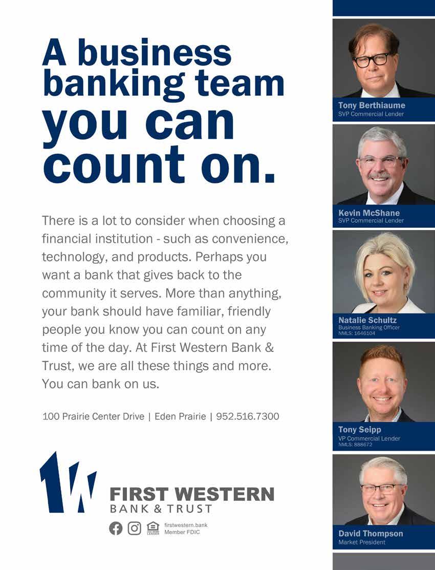 As always, I would like to thank all of Eden Prairie Lifestyle’s sponsors, without whose generous support we could not mail our magazine directly to our readers’ homes. I always welcome any feedback or interest you may have in appearing on our magazine’s pages!