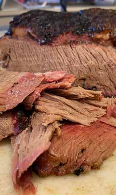 a controlled burn that produces smoke.” During the day, if a hotter fire is needed, Al and his assistants will toss in a few pieces of dry split wood. Bringing the pit temperature up and down is made possible by dampers activated by an electric thermostat – the more air let in, the hotter the smoldering fire. Thermostats and dampers aside, though, good barbecue takes a watchful eye. “It’s an art, not a science,” Al maintains.