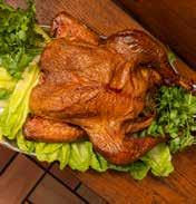 With the holidays approaching, Al and his crew will be smoking plenty of turkeys and hams to fill special orders for Thanksgiving and Christmas. “For a 12- to 14-pound turkey, we smoke at least four hours, maybe five or five-and-a-half,” says Al. “The skin gets a nice mahogany color – like a lacquered mahogany finish on furniture.” Hams get a longer stay in the pit. “A whole ham smokes all night, at least nine hours, on the upper shelf where the temperature is lower. We put half hams on the higher shelf, for a shorter time. Either way, the taste is wonderful. Sometimes, your tongue will tingle from the smoke. It’s hard to describe.”