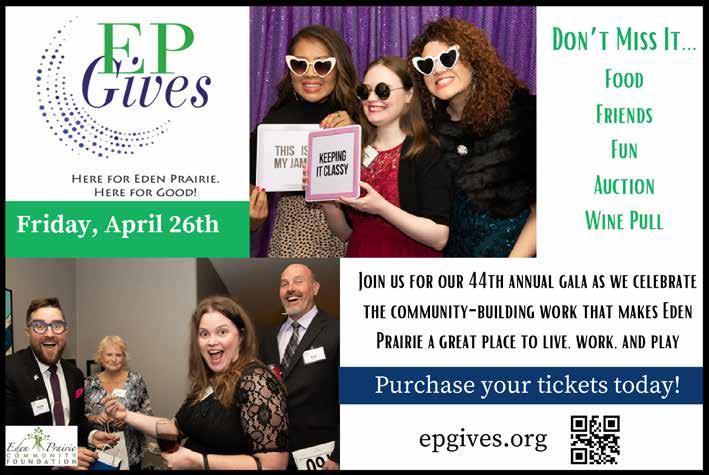 As always, I would like to thank all of Eden Prairie Lifestyle’s sponsors, without whose generous support we could not mail our magazine directly to our readers’ homes. I always welcome any feedback or interest you may have in appearing on our magazine’s pages!