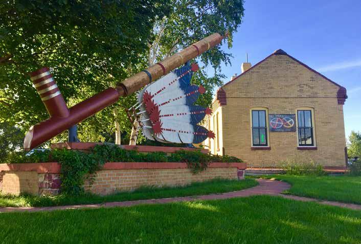 "Another popular attraction is the World’s Largest Ceremonial Pipe, which is less than half a mile south of the monument. It was installed by the Keepers of the Sacred Tradition of Pipemakers in 1999, and at 30 feet long it makes quite the selfie backdrop. The Keepers have their own shop just inside the Rock Island Railroad depot where you can schedule your own pipe carving class."