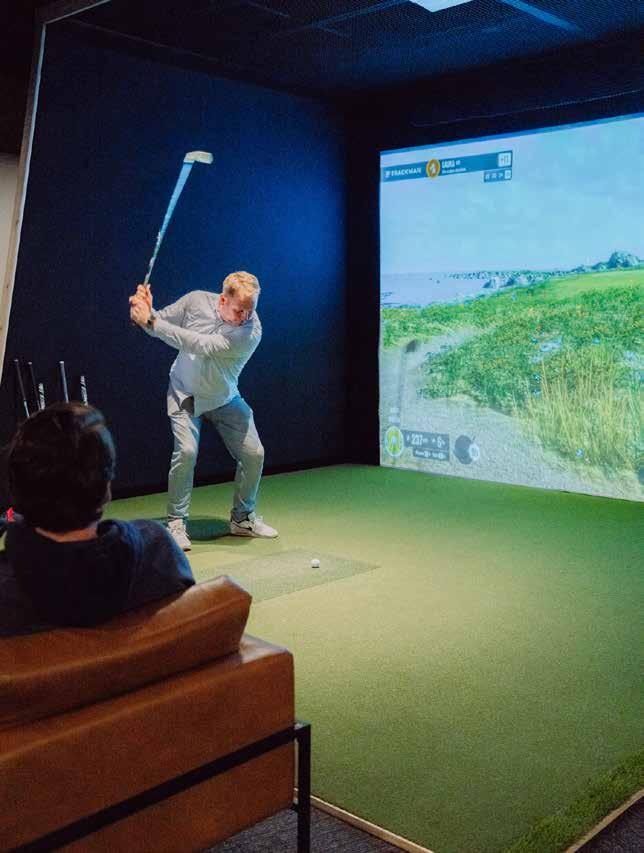 I could practically feel the sand in my shoes by the 18th hole, which I somehow managed to reach in just under an hour. (A party of four can play a full round in about as many hours.) Such stateof-the-art yet accessible technology really opens golf’s applications. If you’re accustomed to closing big deals on the green or just palling around with your friends there, Office Golf makes it possible to be yourself all winter long.