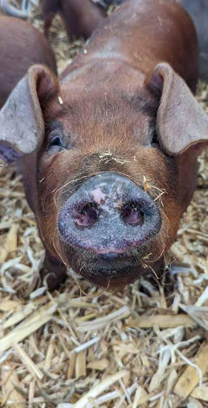 “We raise hybrid pigs: Duroc sire, Yorkshire dams. That gives our pork the full characteristics of Duroc, which is famous the world over for its exceptional yet accessible flavor, as well as its perfect balance of leanness and deep intramuscular marbling. That also means our piglets are raised by careful mothers, which is a trait the Yorkshire breed is highly regarded for.