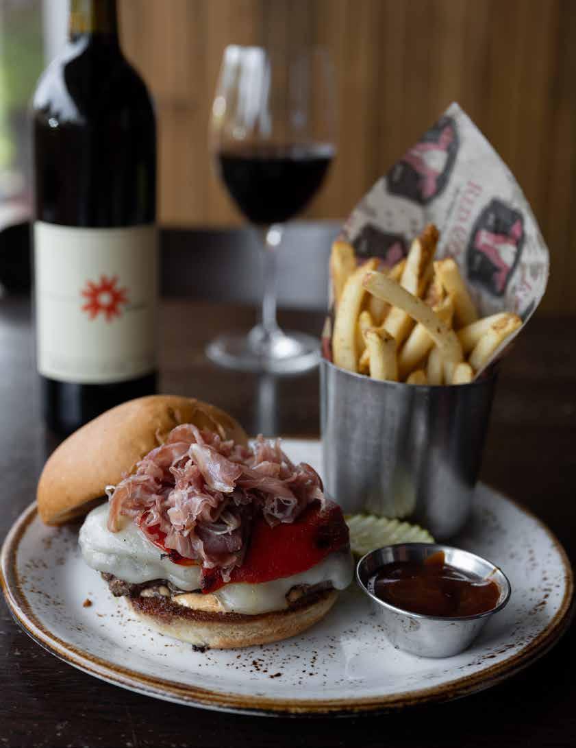 Champagne can be ordered by the glass. “We have a preservation system that recompresses the bubbles so that you get a nice sparkling glass every time,” he says. “Our reds and whites are preserved too so that all of the oxygen is removed from the bottles – they always stay fresh. It really is an elevated wine experience in a tavern setting.” Choices include French, Italian and fine wines from California and Oregon.