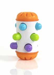 The colorful textured pegs move in and out as the cylinder rolls on its soft silicone tires. It’s amazingly fun to watch. The textures are fascinating for little fingers to feel. The pegs rattle beautifully when you give it a shake. Plus, it’s easy to take anywhere! Sensory learning is on a roll with Rolio.