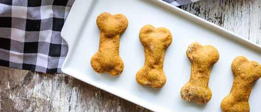 Preheat oven to 350 degrees and line baking sheet with parchment paper. In a bowl, mix all ingredients except flour and blend well. Gradually add the flour until the dough isn’t sticky. Roll dough into a ball. Lightly flour your surface and lightly kneed. Use a rolling pin to roll dough to ¼-inch thickness. Use cookie cutters and place dough on baking sheet. Bake for 20-25 minutes. Drizzle with peanut butter (optional).
