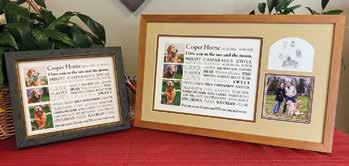 “Susan framed two pieces for me as a memorial to our beloved dog. She was gentle, asked great questions and made two unique and beautiful pieces. Trust Susan to create beautiful pieces for anything you hold dear and want to preserve.”
