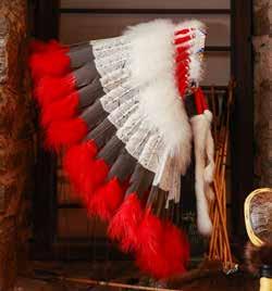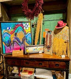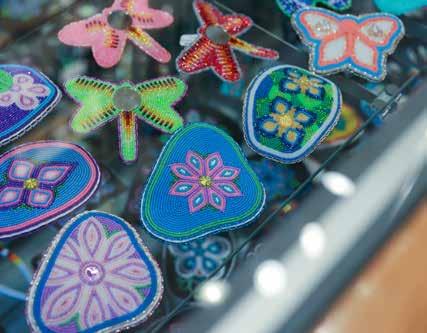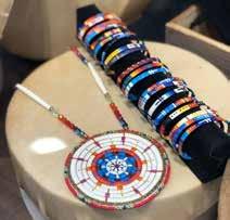 Americans, such as jewelry made from dyed and flattened porcupine quills. “I also have handmade beadwork items like moccasins, pipe bags, tobacco bags, and other merchandise like barrettes, earrings, necklaces and bracelets made from tiny seed beads. There are handmade Native style cedar flutes, and handpainted leather wallets of woodland scenes.” Customers can also find handmade traditional ribbon skirts, and turquoise and silver jewelry from the Southwest.
