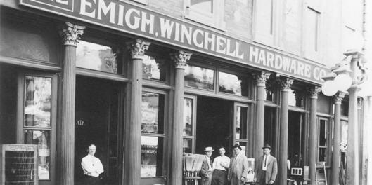 Founded in 1908 by brothers James and Clay Emigh, the business passed into the hands of James' sons Albert, James Jr., and Colby in the early 1930s. Joining the Ace Hardware Corporation in the 1960s, the company introduced a cartoon character depicting a pigtailed girl in overalls saying, “Call me Amy.” Little Amy, a composite of Colby and Jesma Emigh’s daughters Carol and Mary, is still a familiar feature in Emigh Hardware advertisements.