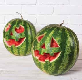With luck finding a melon or watermelon at the store, simply carve it like a jack-o-lantern and make the mouth large enough to have other sliced fruit emerging, such as cut pineapple, sliced grapes and apple chunks. Along the side, peel mini oranges and add a green stem to mimic pumpkins.