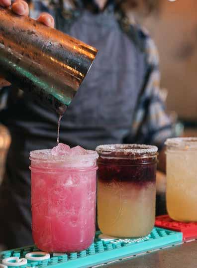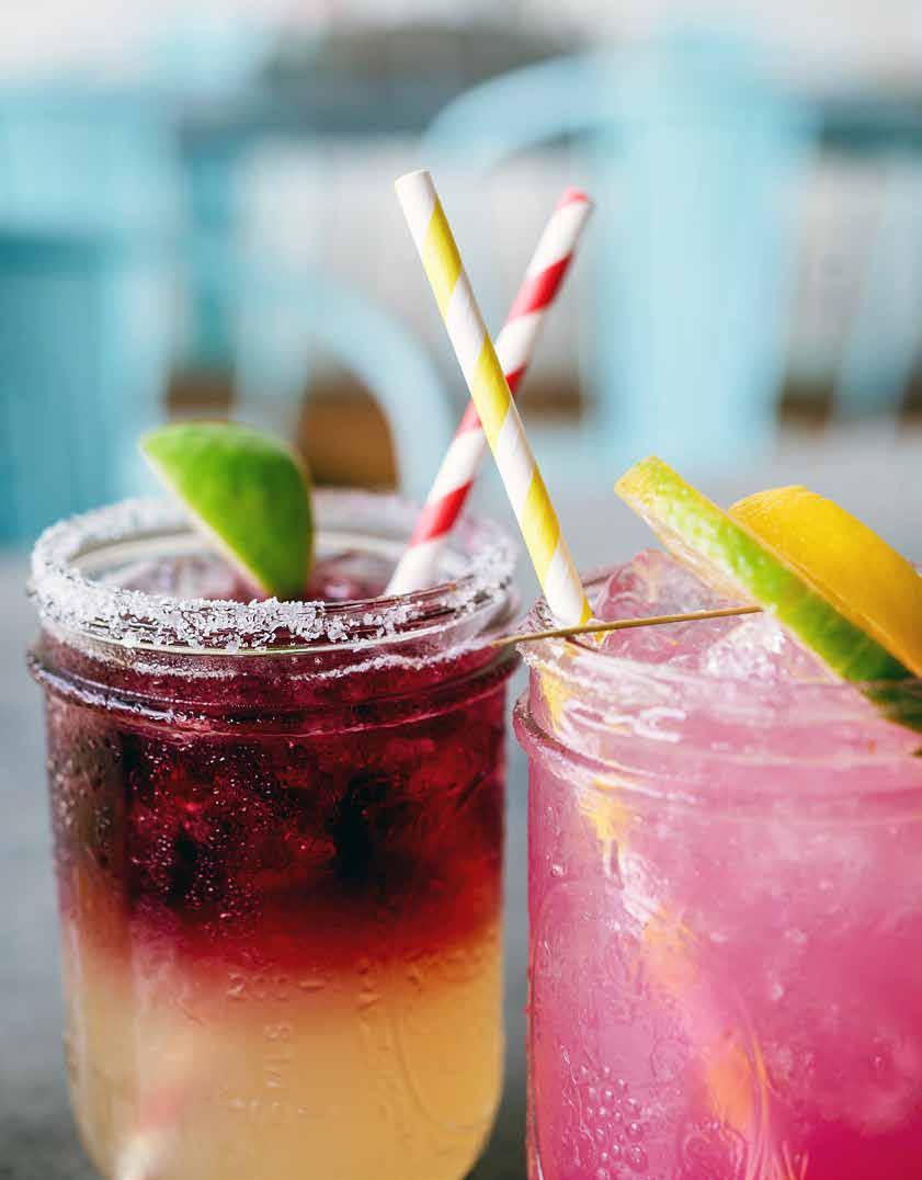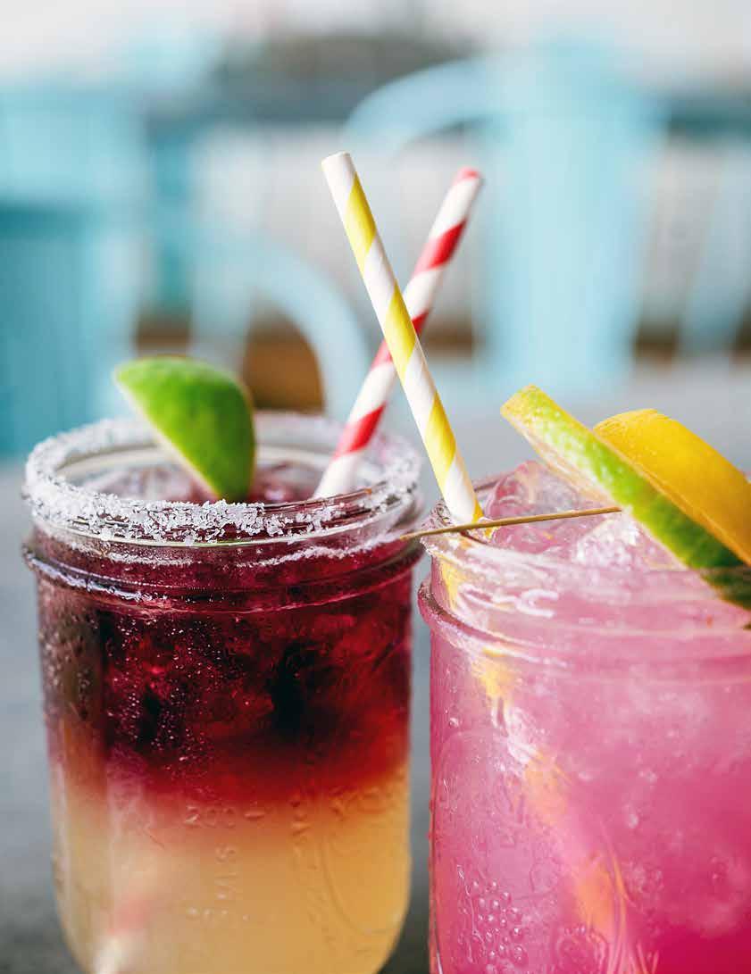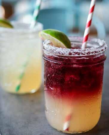 handcrafted cocktails. Pictured left to right is the Signature Margarita with Roja Sangria Float and the Prickly Pear Margarita.