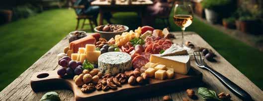 provide a longer shelf life, especially if one traveled. It wasn’t until the Middle Ages that the practice became more refined as the French elevated the concept, prioritizing only the best cuts of meat, choice cheeses and produce, making the practice accessible only to the affluent. After a resurgence in America in the early 2000s, charcuterie has developed into a modern artistic expression, encompassing lavish, table-wide spreads at weddings or special events down to a simple board paired with a nice glass of wine at a weeknight happy hour.