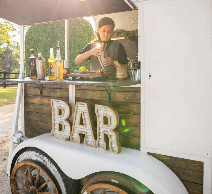 Rolling Shindiggs has a custom cocktail menu that can be tailored specifically for your event along with beer, wine, and mixed drinks. Custom cocktails can be crafted based on drinks and flavors that have sentimental value to the renter. Allanna and Mike are constantly creating new cocktails, but their most popular Signature Drinks are Allanna’s Southern Sunset, Mike’s Pickleback with tajin, and the Shindiggs’ Sangria. Everything from the mixers, garnishes, and decorative napkins are provided and other add-ons are available.