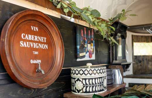 After purchasing the trailer, Mike spent some time renovating and designing it. “It definitely has a different look about it. We were trying to go with a little bit of old west, farm style, and rustic,” says Allanna. “We wanted to make it more luxurious. We made the windows around it have a stained glass look, we put up the wood paneling towards the back and stained all of that, and we have a couple backdrops too for a photo spot. What’s different about ours is on the inside we actually have running water and a big cooler where we can store wine and beer,” says Allanna. Also included is the Hydration Station where they provide chilled water for guests.