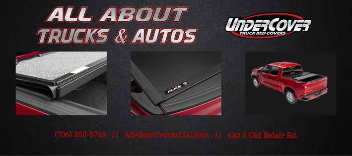 (706) 855-8768 AllAboutTrucksLLC.com 640 South Old Belair Road SERVICES Precision Cut Window Tinting • Lift Kits Leveling Kits • Wheel & Tire Packages Bed Liners • Bed Covers • Detailing and MORE Financing Available. Text DGRQB to 844-223-8937 to Apply. Gift Certificates Available