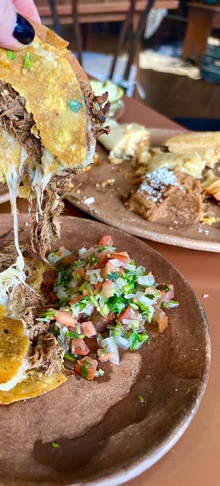Our next stop is TÜMÜ, an authentic home-style Mexican, nestled in Harry’s Corner shopping plaza. Owner, Karla Krassin, was born and raised in Oaxaca, Mexico, and she honors the recipes and techniques that have been passed down from generation to generation in her family. This is primarily a takeout spot, with just two tables, but our family picks up dinner here weekly. One of my favorite dishes here is the Birria Quesadilla. For those unfamiliar with Birria, which has taken the culinary world by storm in the last few years, it is a deeply flavorful slow-cooked meat stew served with its braising liquid. Krassin serves hers between two tortillas with plenty of queso. This is the stuff of legends.