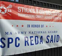 Sticks for Soldiers Thanksgiving Lacrosse Classic for Wounded Servicemen and their Families, 2023 Honoree, Reda Said. 1: Port 5 Honor Guard 2: Ron Farina, Reda Said, Sofia Bendok, Bob Vitale and James L. Campbell, Jr. 3: Host lacrosse program Ludlowe vs Weston. 2 of the 32 particpating high school lacrosse programs. 4: Mid-day honoree ceremony 5: Event location Rafferty Stadium: Girl’s lacrosse 6: Honoree banner 7: Event location Ludlowe High School Taft Field Photography by Edward Iannone