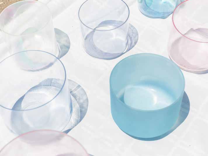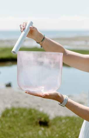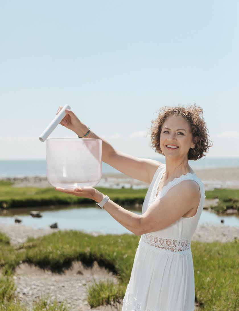 live-stream anything, so I immediately signed up for a course on how to live stream a sound bath. On the day of the event, over 100 people attended, and the event got rave reviews. The teacher of the live-stream course used singing bowls that were different from mine. They were beautiful colors, slimmer and more refined. I learned that the crystal of her bowls was infused with gemstones, precious metals and rare minerals. Each of these elements added its own energetic signature to the quartz crystal frequencies that were emitted when the bowls were played. When I heard these alchemy crystal bowls, I was moved to tears. And so began my journey with alchemy crystal singing bowls and sound therapy. I believe in their power to heal so deeply that I have become a distributor for the company that makes the bowls, so that I can participate in assisting others to create their own sound therapy practices and communities.