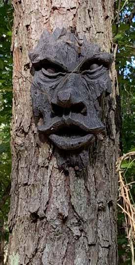 A creepy tree face keeps watch over the Peters Family Cemetery.was working in the fields located near where Flat Rock Middle School is today when he saw a young girl sitting on a stump. Walking closer, he recognized the girl as his recently deceased sister. He talked with her for several minutes before she vanished.