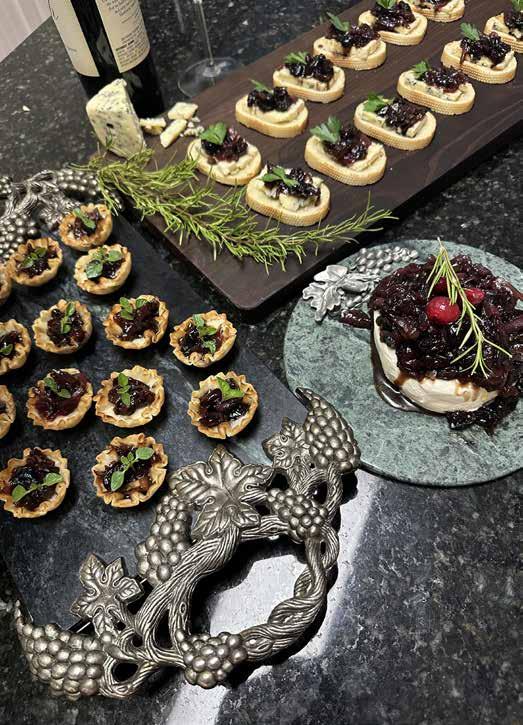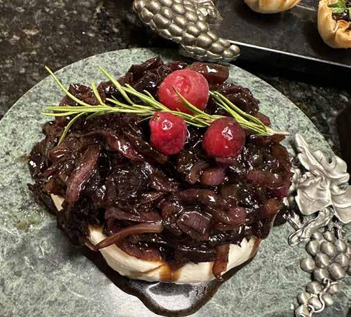 This is my favorite way of serving the confit. It makes such a beautiful presentation and your guests can have as much or as little as they desire. I either use Brie or Cream cheese for this style. Place the cheese on an appropriate-sized serving plate and spoon the confit over the top of the cheese. Garnish with fresh Rosemary and a couple of fresh cranberries, if you desire. Place crackers or baguette slices around the cheese and watch it disappear!! Serve at room temperature for the best flavor.