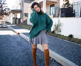 The chunky knit paired with the suede of the OTK boots gives depth to an outfit that could come off plain or drab. Try different patterns, textures and colors, play with it, and find what works for you.