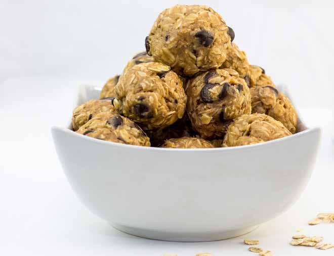 In the bowl of a food processor, add the peanut butter, honey, vanilla, protein powder, flaxseed meal, oats, cinnamon, and chia seeds. Pulse together until well combined. Add in chocolate chips and coconut (if using) and pulse a few more times. Use a medium cookie scoop or your hands to grab the dough and roll into 1.5" balls. Place in an airtight container. To make without a food processor: add wet ingredients to a medium bowl and mix to combine. Add in dry ingredients and mix together until combined. You may need to use your hands to mix and work with the dough. At this point, you should be able to form balls that stick together. Because all peanut butter/nut butter consistencies are different and depending on what protein powder you use, you may need to add in more nut butter or honey to help the balls stay together.