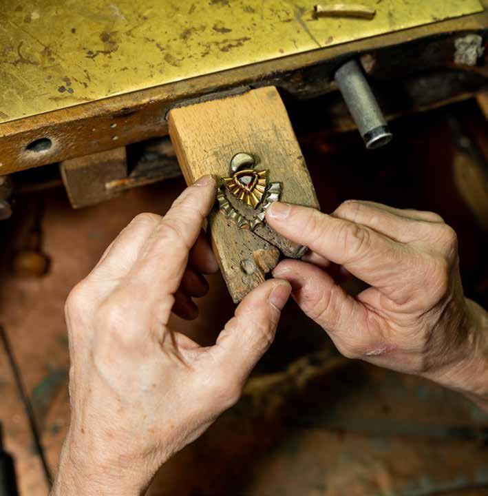 found an opportunity to work for stonesetter Joseph Sauer in nearby Aptos. David said that a lightbulb went off in that first moment entering the store. “I knew I wanted to do it as soon as I stepped into that guy’s shop,” he said. David said it was the diligent, hands-on, and creative nature that drew him in. There with Sauer, he would sweep the floor and learn the techniques required, like stone setting, engraving, and alloying metals. But, after six months, He and Joe decided it was time for David to have his own bench.