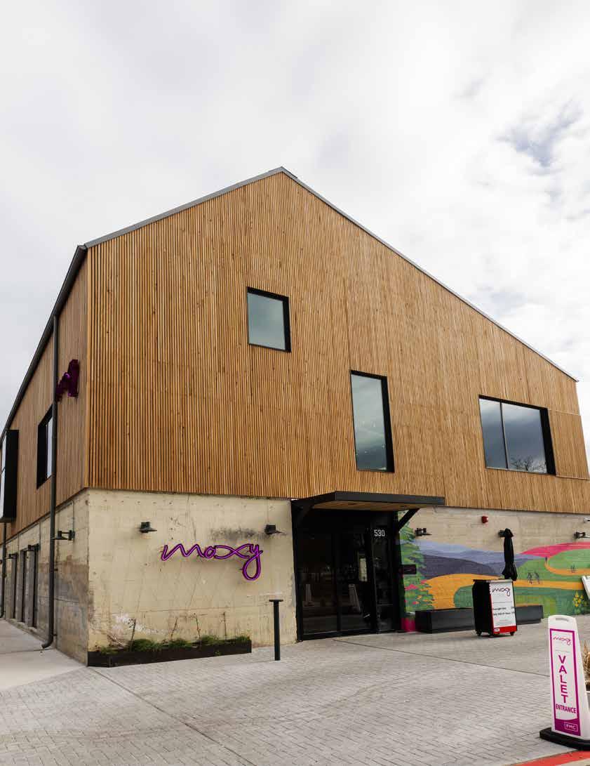 MOXY FAYETTEVILLE OFFERS AN ELEVATED HOTEL EXPERIENCE FOR ITS GUESTS THROUGH A THRIVING COMMUNITY SPACE AND ITS SIGNATURE BAR.