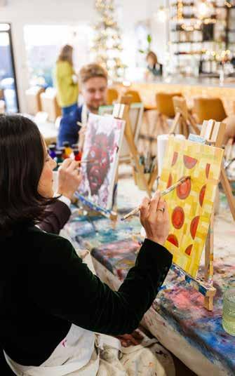 When you want an activity beyond eating and drinking, Wild Brush Revival is a lively creative option. Founded by former art teacher Leslie Wright, it’s part paint studio, part gathering place—where you can order appetizers or a drink and settle in to make something. Cassie says it’s been a favorite for the NSA team, and also for her kids, especially on Farmer’s Market Saturdays.