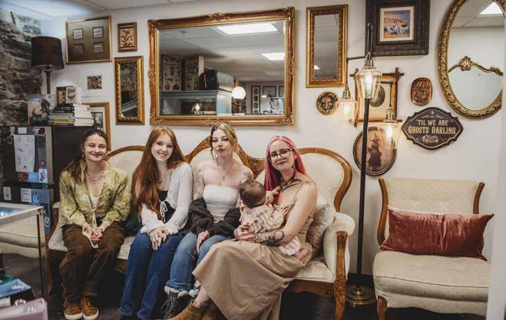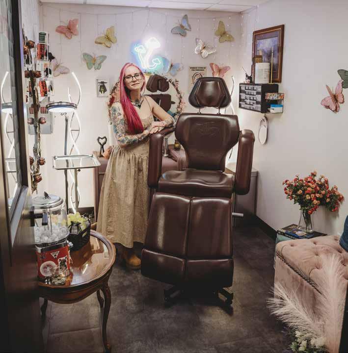 What Sammy has built — with Tucker managing scheduling and filtering out what he charmingly calls “the pains” — is less tattoo parlor, and more sanctuary. Their clientele is roughly 95% women between 17 and 40, though they also see older women, dads, grandmas, and lots of families coming in for piercings. They are, by every measure, not your typical studio.
