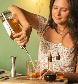 “We want to offer cocktails that are rooted in place, so we work with local farms for some of our cocktail ingredients and also some of our product ingredients,” Lauren says. “For example, for our Mountain Mint Peppermint Schnapps—which is similar to Rumple Minze but way better—we work with a farmer in Creston who’s a third-generation mint grower. I think it really brings this great flavor profile to the product and, again, it really roots us in place.”