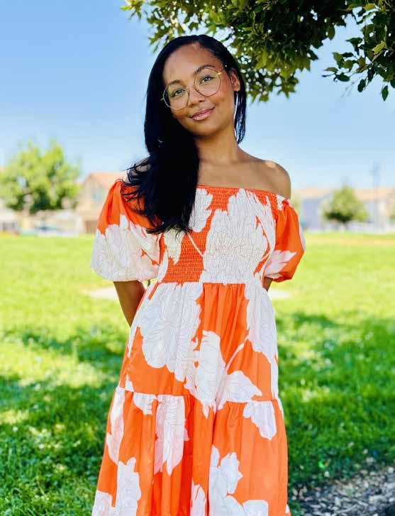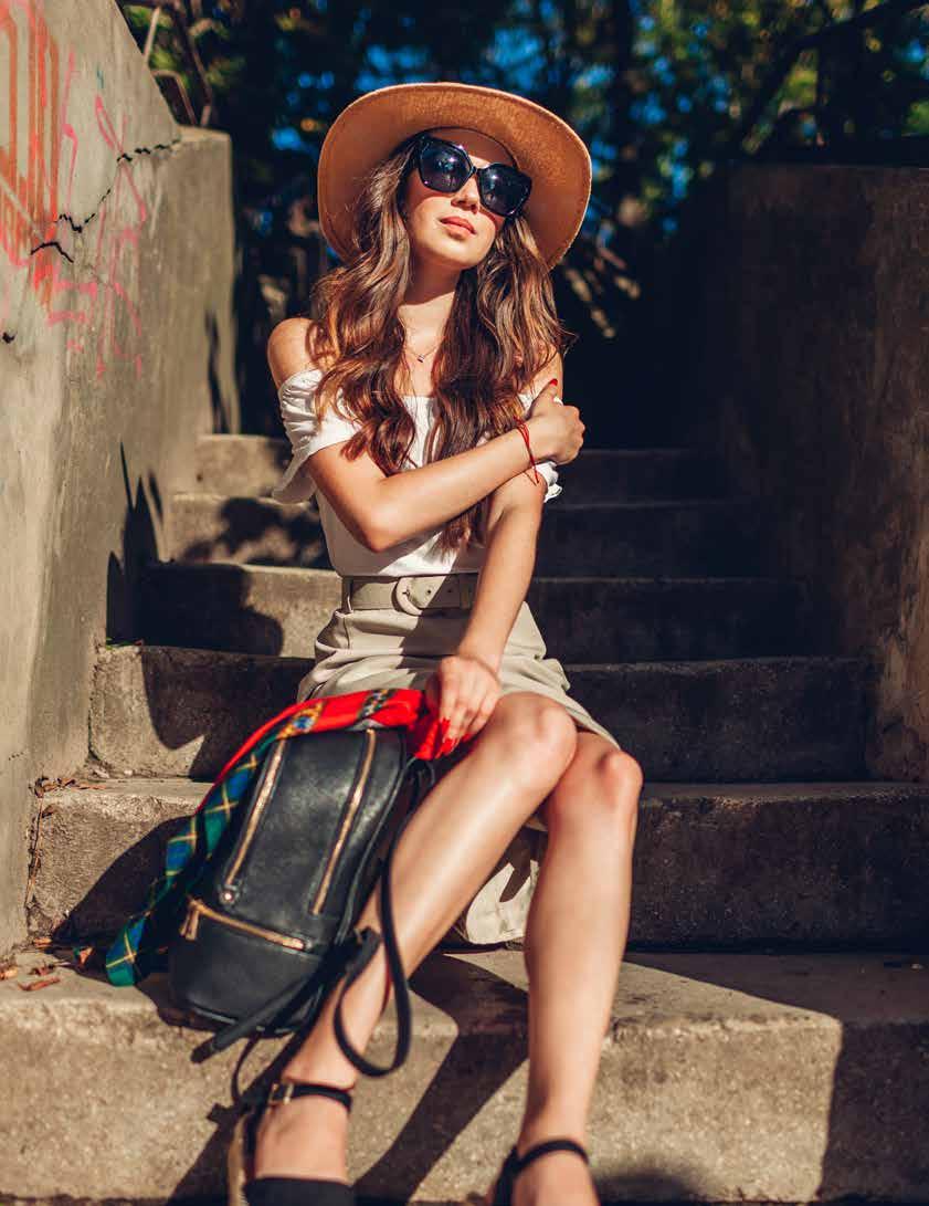 Be bold this season with color. It's easy to make a fashion statement with fun, bright colors. Cassidy from Retail Therapy Session rocks this orange and white floral mid-length (left page) dress with puffy short sleeves. If green is more your color, they have the same style in lime green and white. Find more from Retail Therapy at 307 Riley Street, Historic Folsom. Back to school or back to work? Make it easy with mix-and-match foundation pieces that go with many different pieces in your wardrobe. Add fun colors like ginger, plum, and salmon for a creative fall capsule (shown here) wardrobe that shows off your unique style.