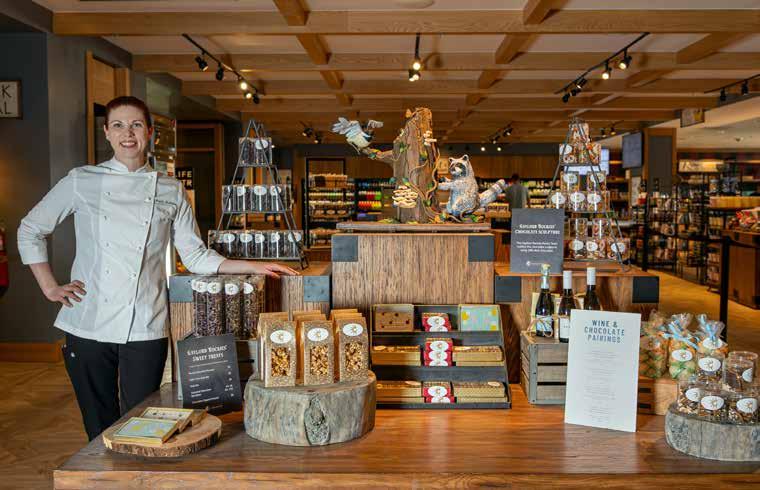 In the Rockies Marketplace, the front table is adorned with offerings from Chef Fratellone’s pastry kitchen. Above the world-famous Gaylord Rockies bonbons and the splits of wine perfectly paired with unique chocolate concoctions made in-house is an exquisite sculpture, which changes seasonally. Made entirely from chocolate, the attention to detail is absolutely stunning.