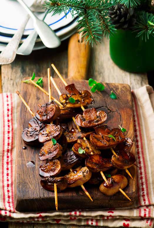 2. Heat grill to medium-high. Skewer mushrooms and grill 2 to 3 minutes per side.
