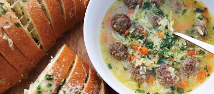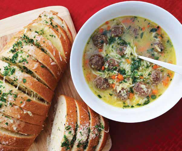 As we continue to embrace the cold weather, we may find ourselves craving heavier and grounding foods as we retreat into hibernation. This change in appetite reflects our body’s desire to align with the cycles of nature. Moving into the New Year, it can be common to place more discipline or restrictions on our eating habits. But what if instead of dieting, we nourished ourselves by choosing to support the ebb and flow of our body’s seasons? What if we chose connection — cooking seasonal meals and allowing ourselves to pause to truly enjoy our food? Maybe cheesy bread could be served without the side of guilt. This Italian wedding soup recipe is simple in its approach, but the result is a hearty and brothy dish. Chunky meats and vegetables add texture to the rich, savory broth making it the ideal meal to help you retreat from the cold temperatures. The Hasselback bread loaf is a straightforward, melty wonder and the perfect vessel for sopping up any leftover broth and goodies in your soup bowl. Together, the soup and cheesy bread make for a well-rounded meal to ground you this season, with a little indulgence.