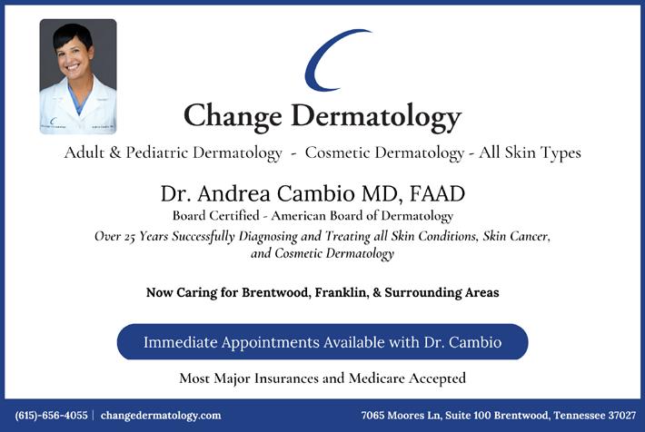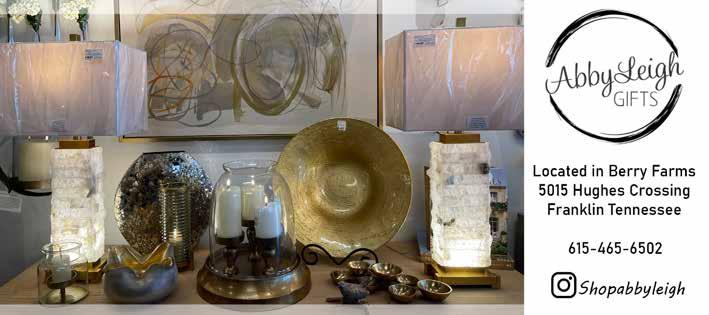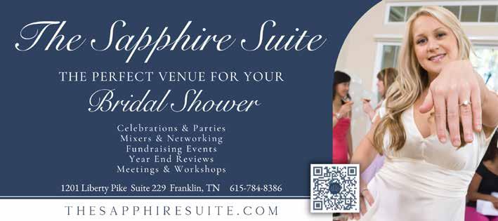 Learn how to start your own publication at: citylifestyle.com/franchise CITYLIFESTYLE.COM/FRANKLIN | Franklin Lifestyle™ is published monthly by Lifestyle Publications LLC. It is distributed via the US Postal Service to some of the Franklin area’s most affluent neighborhoods. Articles and advertisements do not necessarily reflect Lifestyle Publications’ opinions. No portion of this magazine may be reproduced in any form without written consent. Lifestyle Publications does not assume responsibility for statements made by advertisers or editorial contributors. Information in Franklin Lifestyle™ is gathered from sources considered to be reliable, but the accuracy of all information cannot be guaranteed. Franklin Lifestyle is available for pickup at the following locations: • Whole Foods - Franklin • Tim Thompson Premier Realtors - Franklin • United Country Real Estate - Leiper's Fork • Local doctors and professional offices around the area 8