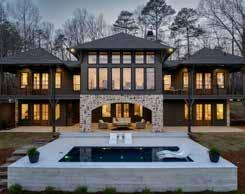 Inside, the main level welcomes you with soaring 14-foot ceilings, a spacious open floor plan, and a stunning kitchen featuring custom cabinetry and a large island topped with nearly a full slab of marble. The living area showcases a floor-to-ceiling rock fireplace with gas logs and a wall of windows that frame incredible views of the heated saltwater pool and the main channel of Smith Lake.