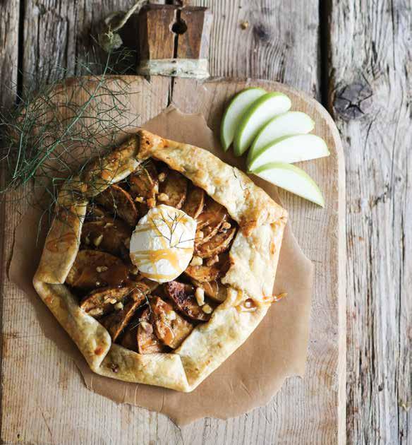 Assemble and Bake: Preheat oven to 375 degrees. Line a baking sheet with parchment paper. Roll the dough into a circle and set on parchment paper. Arrange apples in center of dough, leaving about one inch of space for the edges. Fold crust over the apples and press to seal edges. Drizzle with caramel sauce and sprinkle with pecans or walnuts. Bake for 35 minutes. Serve with caramel sauce and ice-cream.