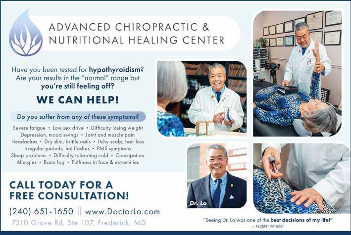 Most people are looking for a solution to improve their health. At Holistic Health Associates, we tailor a treatment plan including Acupuncture, Massage and Nutrition to enhance your body’s ability to heal itself, so that your health never limits your life. NEVER LET YOUR HEALTH LIMIT YOUR LIFE BOONSBORO 301-432-4940 boonsboro@hhamd.com FREDERICK 301-620-1414 contactus@hhamd.com LEARN MORE Kathy Schultze, Agent 100 Tuscanney Drive Frederick, MD 21702 Bus: 301-694-6711 KathySchultze.com Kathy@KathySchultze.com VB @KathySchultzeStateFarmAgent State Farm Life Insurance Company (Not licensed in MA, NY or WI) State Farm Life and Accident Assurance Company (Licensed in NY and WI) Bloomington, IL 2001574 HERE TO HELP BUSINESS GO RIGHT. Ask how our small business can help protect yours. Like a good neighbor, State Farm is there.® 13 | CITYLIFESTYLE.COM/FREDERICK JULY 2023