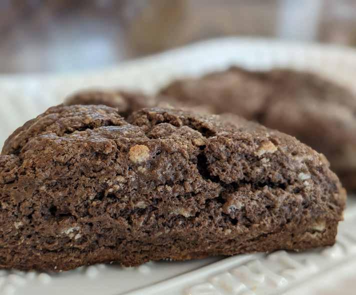 Chocolate Almond Scone with sweet almonds tucked throughout.