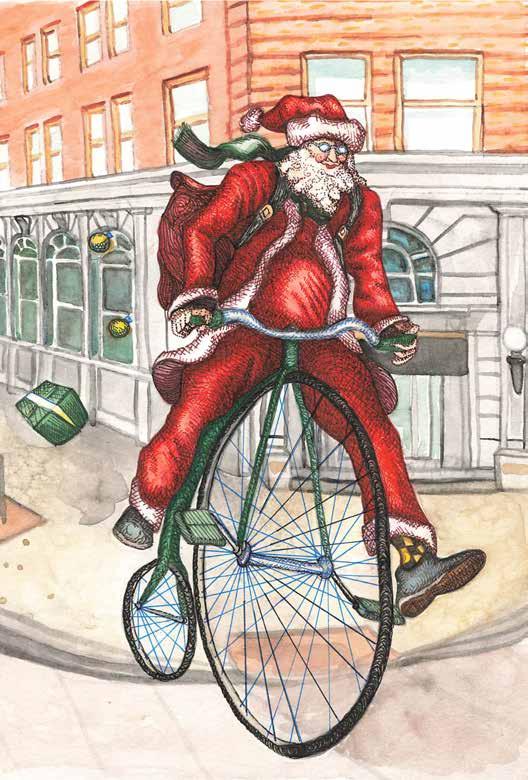 For Frederick Lifestyle’s December cover, Shelby channeled that same spirit—depicting Santa pedaling through Downtown Frederick on a penny-farthing bicycle when his sleigh just wouldn’t do. Follow her work on Instagram at @ss_illustration_art or reach her at shelbystults@gmail.com for commissions.