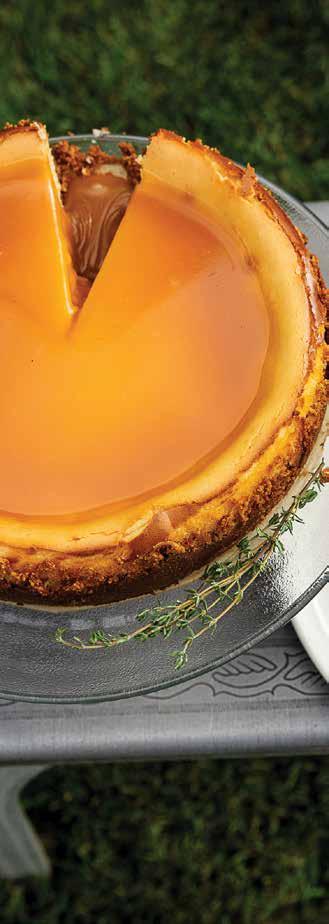 4. Remove cheesecake from the fridge and add the caramel to the top