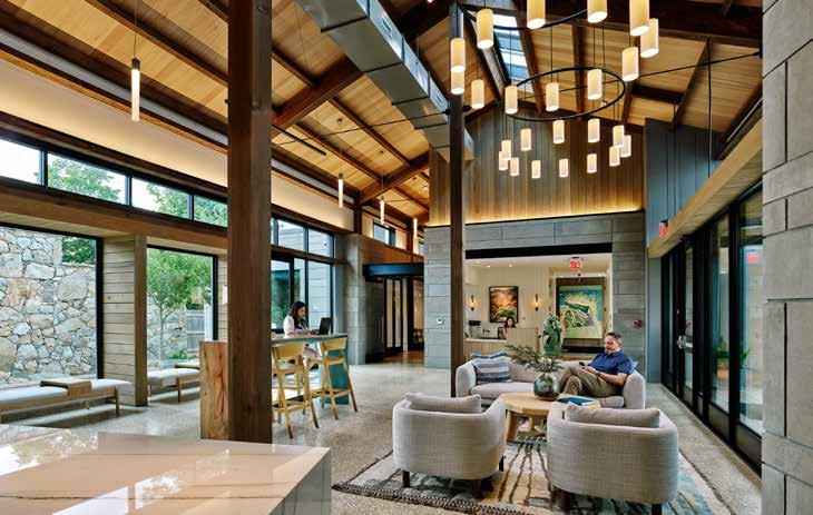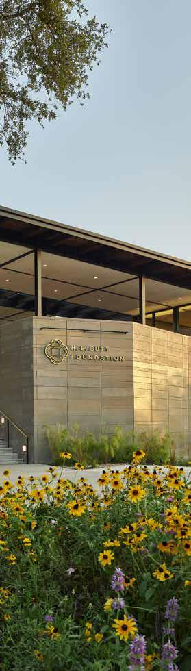 Since 2017, Card & Company has worked closely with the H.E. Butt Foundation on its capital improvement programs, including camp sites and the development of a striking San Antonio office on Sunset Road. The latter boasts a dramatic roof canopy that stretches over the street front entrance, connecting two community buildings. A timber-framed office wing borders a courtyard flowering with native plants, and inside, sunlight dapples through the lobby skylights, clerestories, and studio windows, as if sifting through trees.