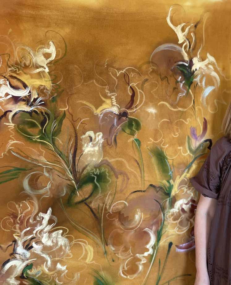 Living in Fredericksburg has also strengthened her commitment to making art accessible to the community that inspires her. While gallery representation has broadened her reach, it can create distance between artist and audience, a gap she hopes to bridge locally. Her murals at Dimona and the reimagined The Restaurant at the Albert Hotel offer immediate encounters with her work, and she values the direct relationships that grow through these efforts. Through public art and community engagement, she aims to help cultivate an art culture that feels rooted, welcoming and reflective of the region itself. Her approach centers on creating opportunities for residents and visitors to encounter art in ways that feel immediate and personal.