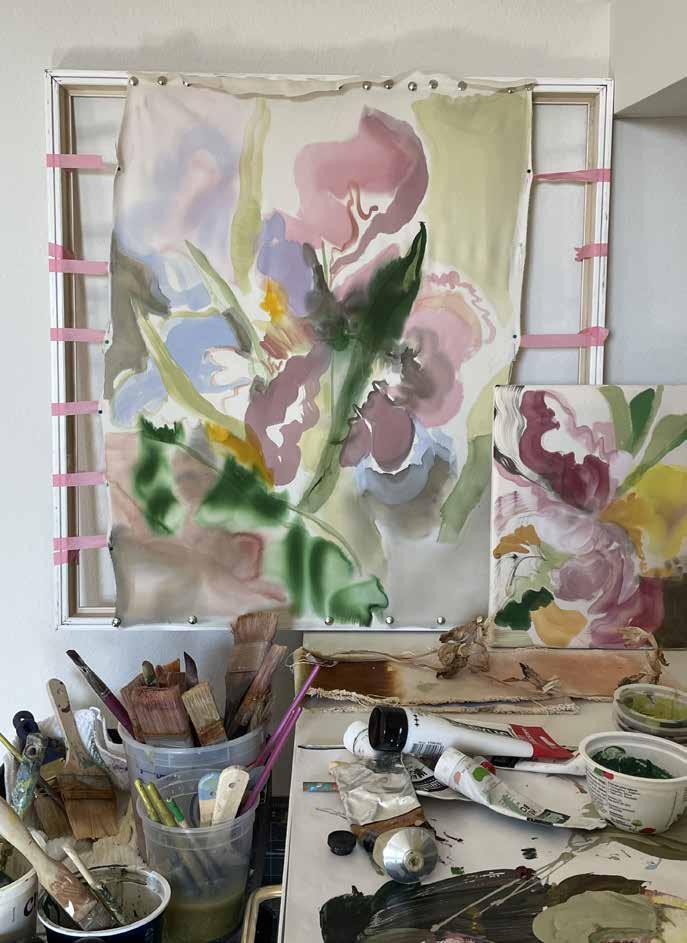 These influences converge in her interpretation of the local environment, allowing her to express the terrain, flora and changing light of the region in a distinctly contemporary visual language. Her recent iris-focused series, developed from flowers grown in her artist's garden, reflects her ongoing exploration of intimate botanical forms and seasonal light.