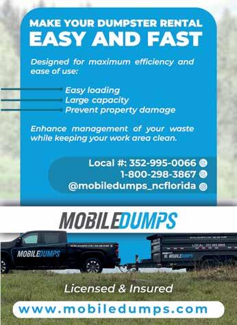 MobileDumps / Enhanced on-site debris collection and disposal / 1-3 Day rentals / 10% off First Rental code: “city10” / (352) 995-0066 / www.mobiledumps.com