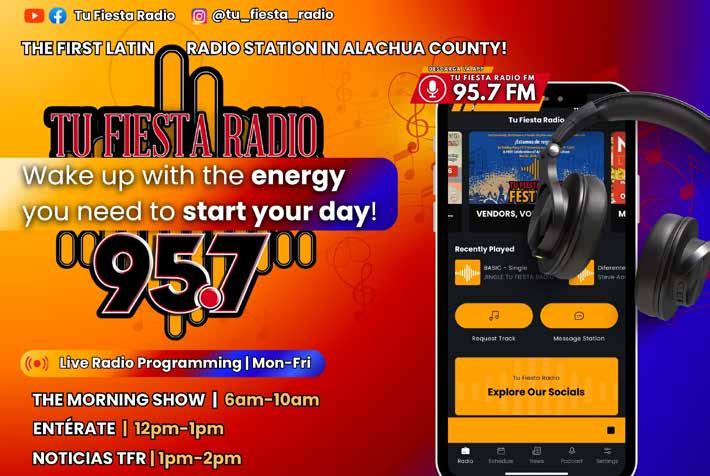Tu Fiesta Radio is the first and only Spanish language radio station in Gainesville, Florida. We made history by serving Alachua and Marion counties through 97.3 FM, HD2 and now 95.7 FM. We're proud to reach nearly 20,000 Latinos locally and 35,000 internationally. Former Mayor Loren Poe proclaimed November 1st as “Tu Fiesta Radio Day”. Let's celebrate our Latin American cultures together with the entire Hispanic community.