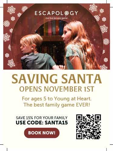 Come and warm your spirits as you work as a team to Save Santa and pose for pictures under one of our Christmas trees.